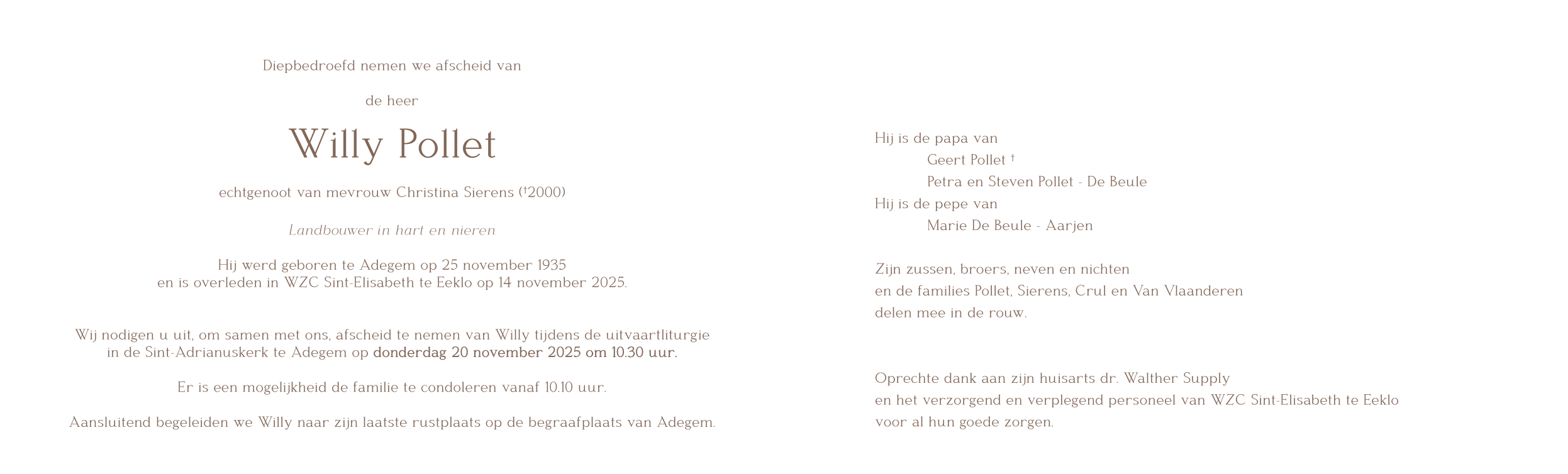 Overleden te Eeklo (9900) op vrijdag 14 november 2025 op 89-jarige leeftijd